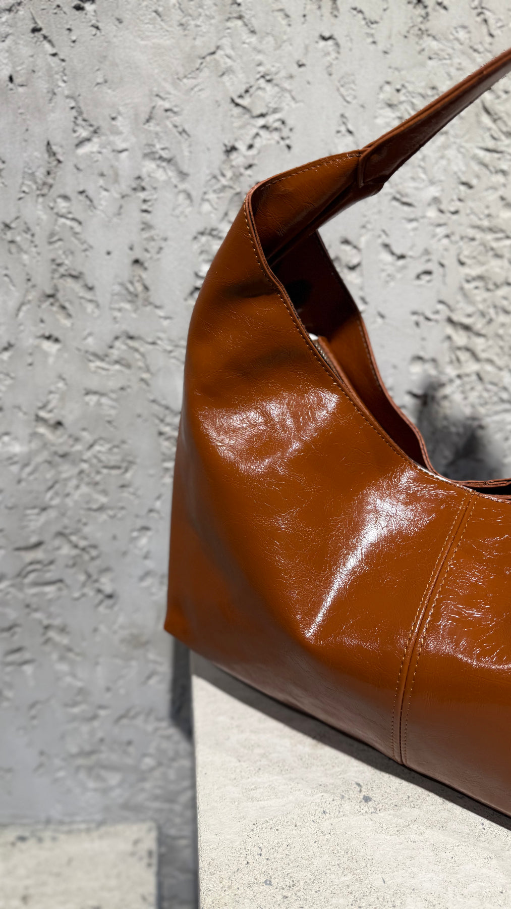 Štýlová kabelka v leskom prevedení.